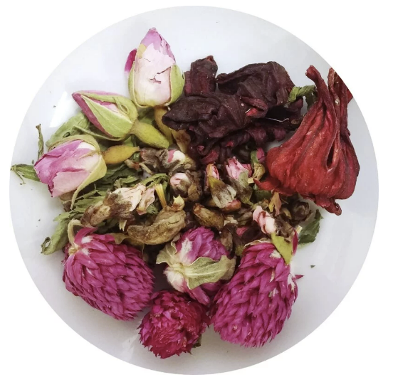 【成分】玫瑰花 千日紅 洛神花 桃花 甜菊葉